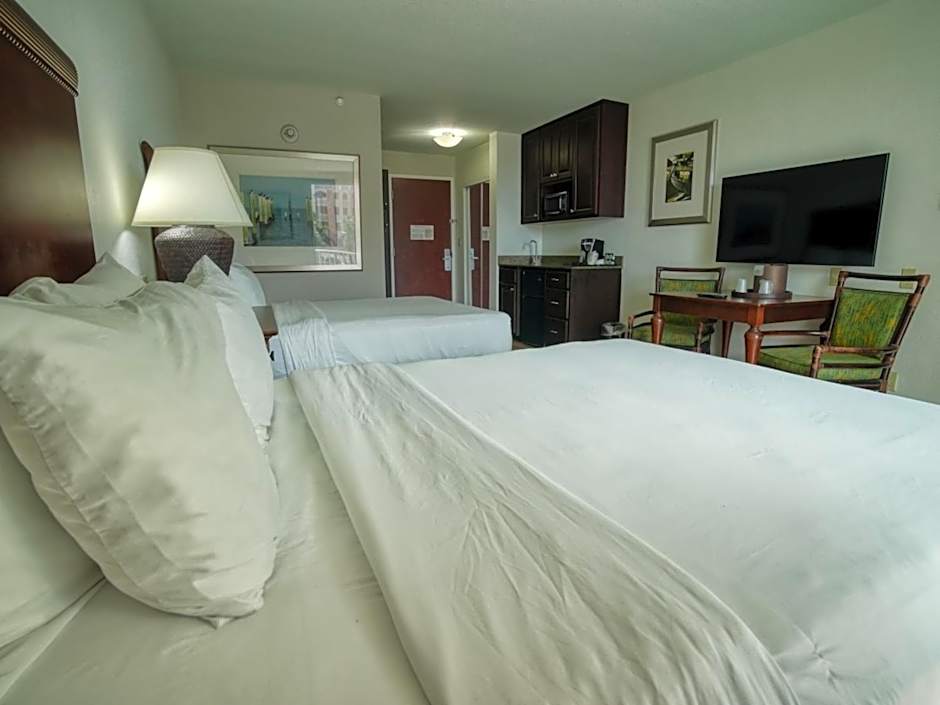 This guestroom includes a microwave, small refrigerator, and coffee-making facilities. A 42-inch flat-screen with cable is provided.